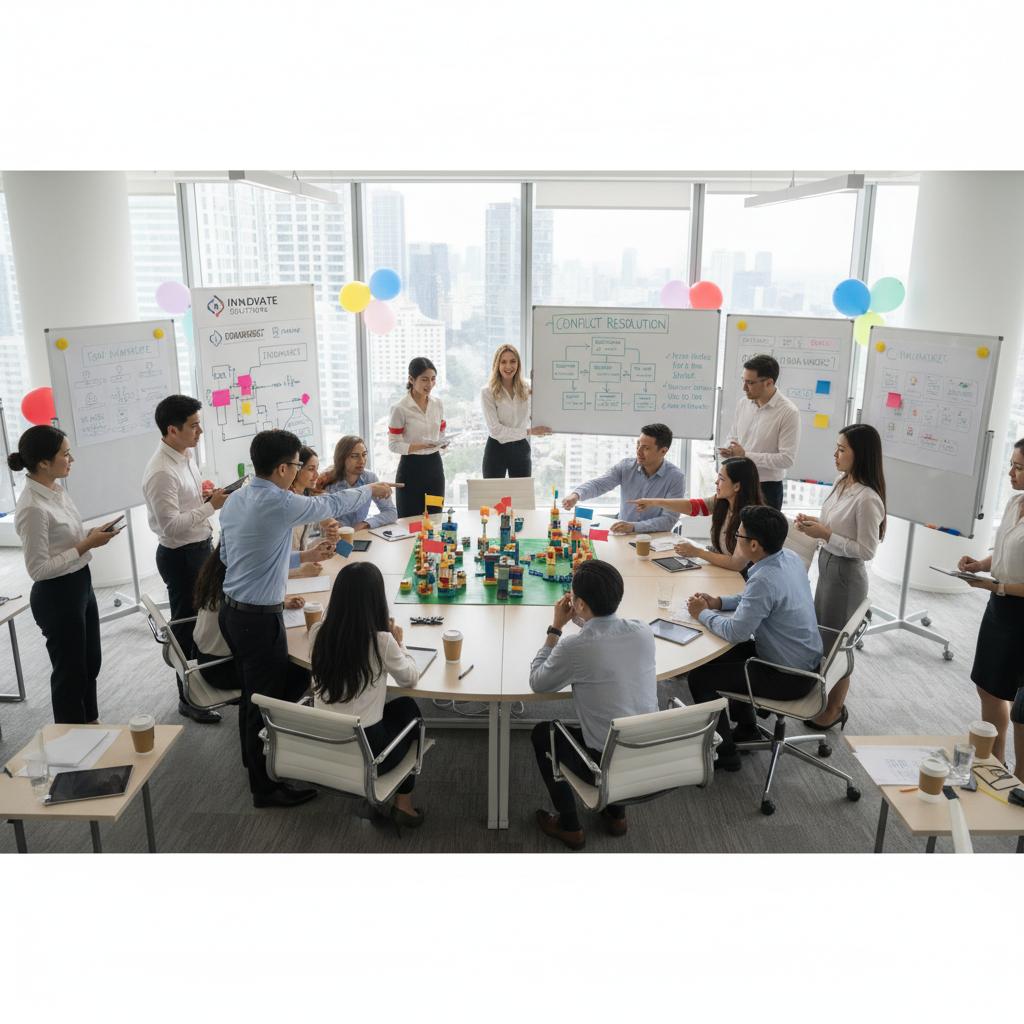 - Edukacyjne symulacje konfliktów i ćwiczenia do wdrożenia w zespole.
